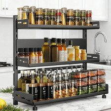 1 x 3-tier Spice Rack. A clear and detailed instruction sheet is included and help you to easily assemble for using and take apart for transport. Movable Cutting Board Rack It is also solid and strong enough to support the shelf and stuff you put inside.