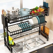 Over the Sink Dish Drying Rack, 2 Tier over Sink Dish Rack, Stainless Steel Sink Drying Rack with Utensil Holder, Large Capacity Dish Drainer for Kitchen Counter, Silver (Fit Sink≤ 81Cm/32). 𝐆𝐑𝐄𝐀𝐓 𝐌𝐀𝐓𝐄𝐑𝐈𝐀𝐋: Premium thick stainless steel,no rusting and high durability dish rack over the sink.This 2 tier dish drying rack over the sink includes:1×plate rack,1×bowl rack, 2×kitchenware rack,1×knife holder ,1×tableware rack,1×sink storage basket,1×cutting board holder.