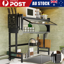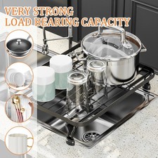 Features: Carbon Steel: Our outstanding over the sink drying rack is made of premium carbon steel. It was specifically created for over the sink use. This gives it an unmatched capacity for bearing loads and wet resistance, allowing it to tolerate the wetness found on your kitchen sink counter. With Cover: This unique feature not only provides an extra layer of protection for your drying dishes but also allows you to keep your countertop clean. Our over the sink dish drying rack's innovative design ensures that your dishes dry efficiently while maintaining a organized kitchen. Versatile and Spacious: Our over the sink dish rack offers ample space for drying a variety of dishes, including plates, bowls, cups, and utensils.