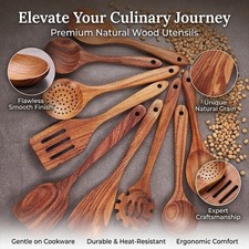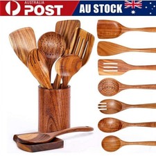 There is a leak hole at the bottom of the spoon holder, so don't worry about water accumulation. 9-Piece Kitchen Utensils Set: A complete wood kitchen utensils that features all the essential cooking tools including a flat spatula, fried spatula, slotted spatula, kitchen utensil holder, spoons rest, strainer spoon, salad fork, salad spoon, mixing spoon.