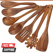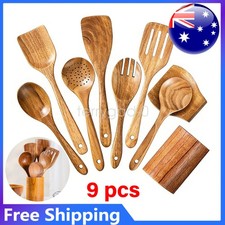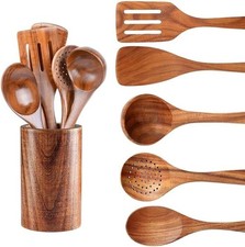 There is a leak hole at the bottom of the spoon holder, so don't worry about water accumulation. 9-Piece Kitchen Utensils Set: A complete wood kitchen utensils that features all the essential cooking tools including a flat spatula, fried spatula, slotted spatula, kitchen utensil holder, spoons rest, strainer spoon, salad fork, salad spoon, mixing spoon.