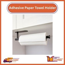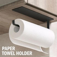 Paper towel holder: Iron tube and plate with coating. Colour: Black. Tool-free installation using 3M adhesive tape. Note: Do not stick the holder on painted walls or wallpapers. Attach to a wall, behind a door or underneath cabinets for easy access.