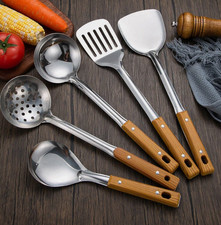 Spatula: 33 9.4 cm/12.99 3.7 in. Spatula: 34 7.8 cm/13.38 3.07 in. Spoon: 32.5 9.5 cm/12.79 3.74 in. Spoon: 33 9.5 cm/12.99 3.74 in. Rice spoon: 25 9.3 cm/9.84 3.66 in. 5Pcs/Set Stainless Steel Kitchen Cooking Tools.
