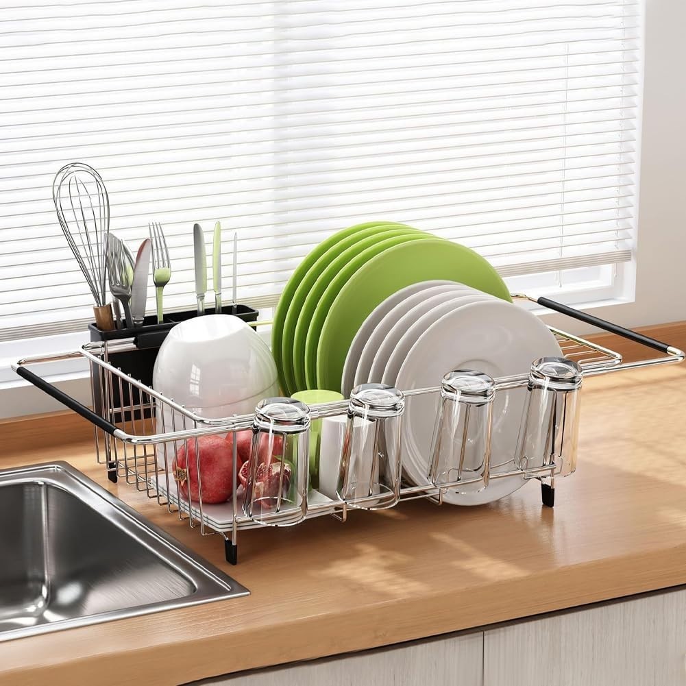 Expandable Over Sink Dish Drying Rack,Stainless Steel Dishes Racks in Sink,Rustp
